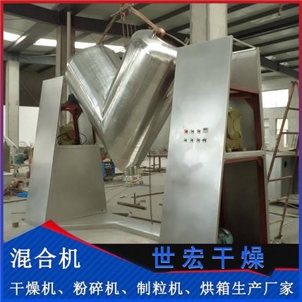 结构:该机由机座、传动系统、电器控制系统、多向运动机构、混合筒等部件组成。与物料直接接触的混合筒采用优质不锈钢材料制造,桶体内外壁均经镜面抛光。